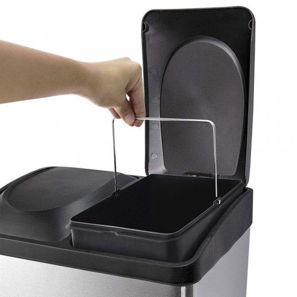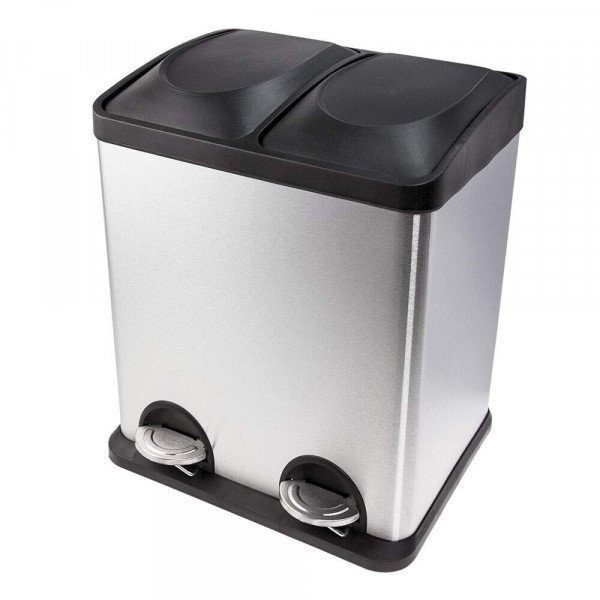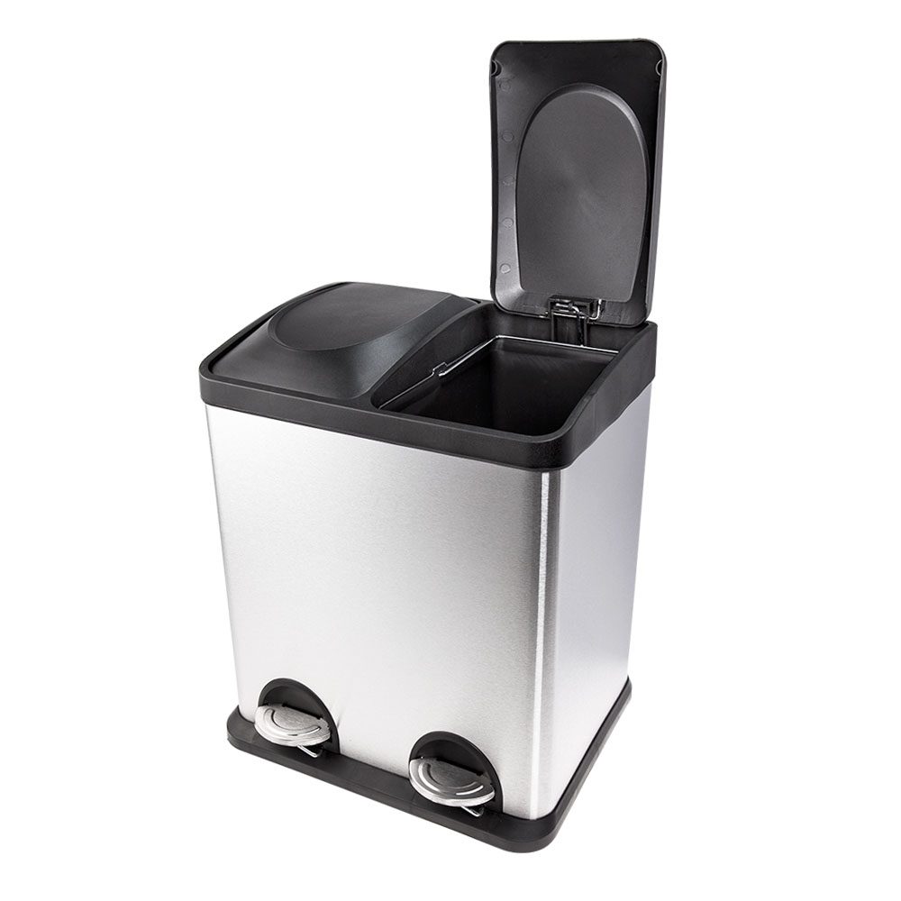 Lixeira Dupla com abertura por pedal. Design sofisticado e resistente. Possui 2 baldes internos removíveis para separação de resíduos orgânicos e recicláveis além de facilitar a retirada de lixo.