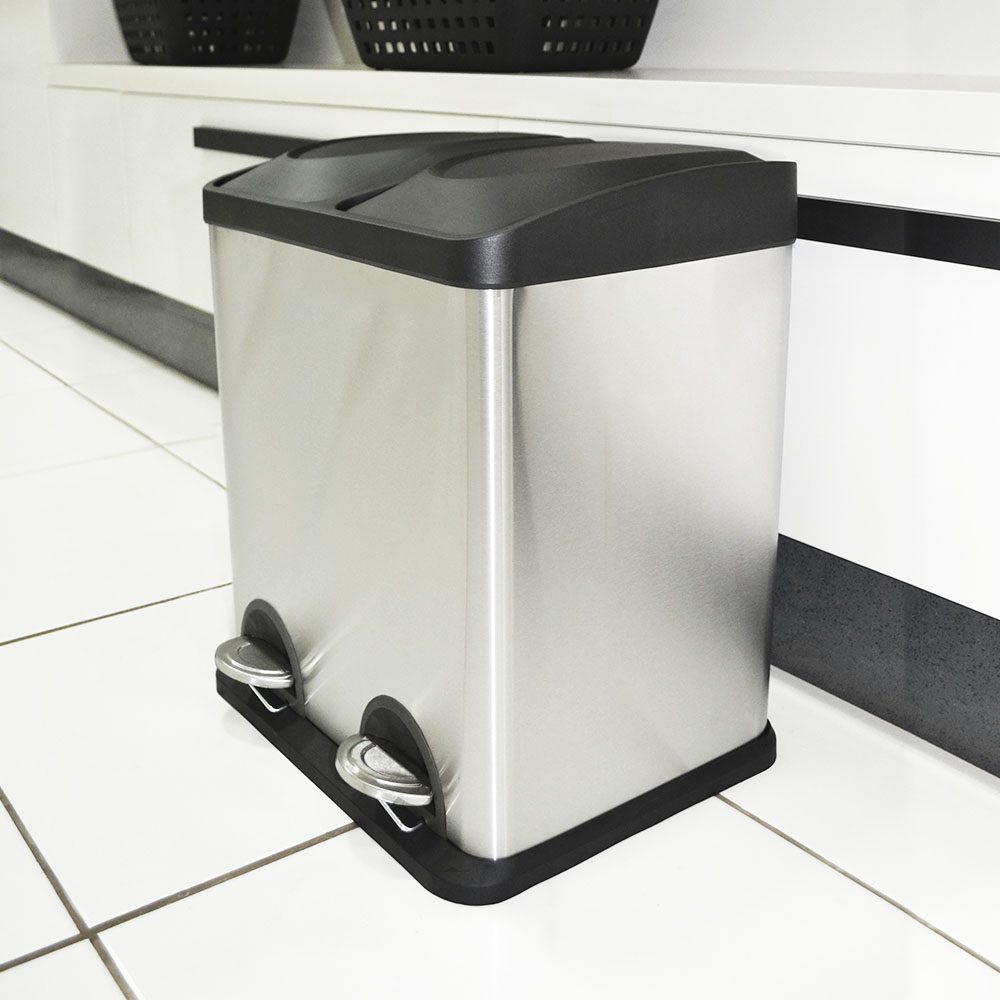 Lixeira Dupla com abertura por pedal. Design sofisticado e resistente.
